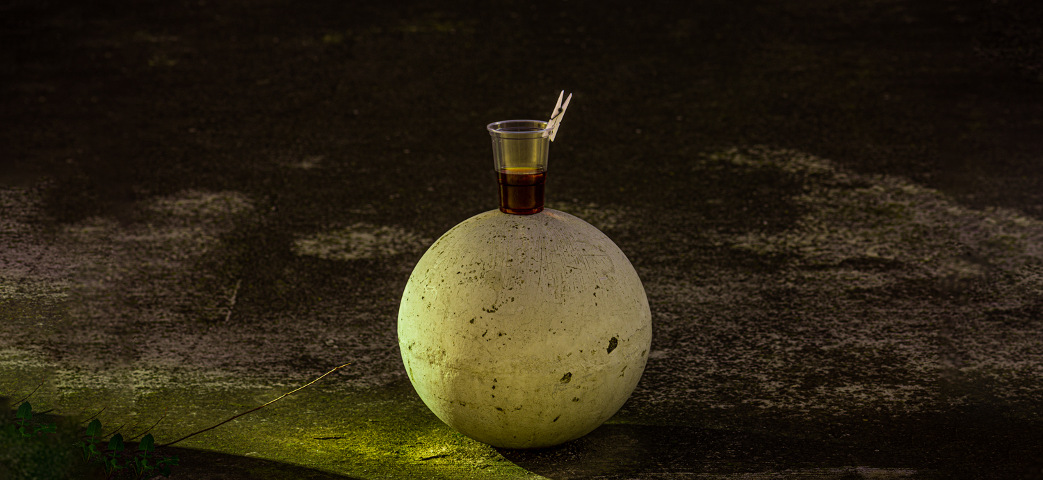 F5273. Bufeta vermella damunt piló. Aproximació pictòrica.