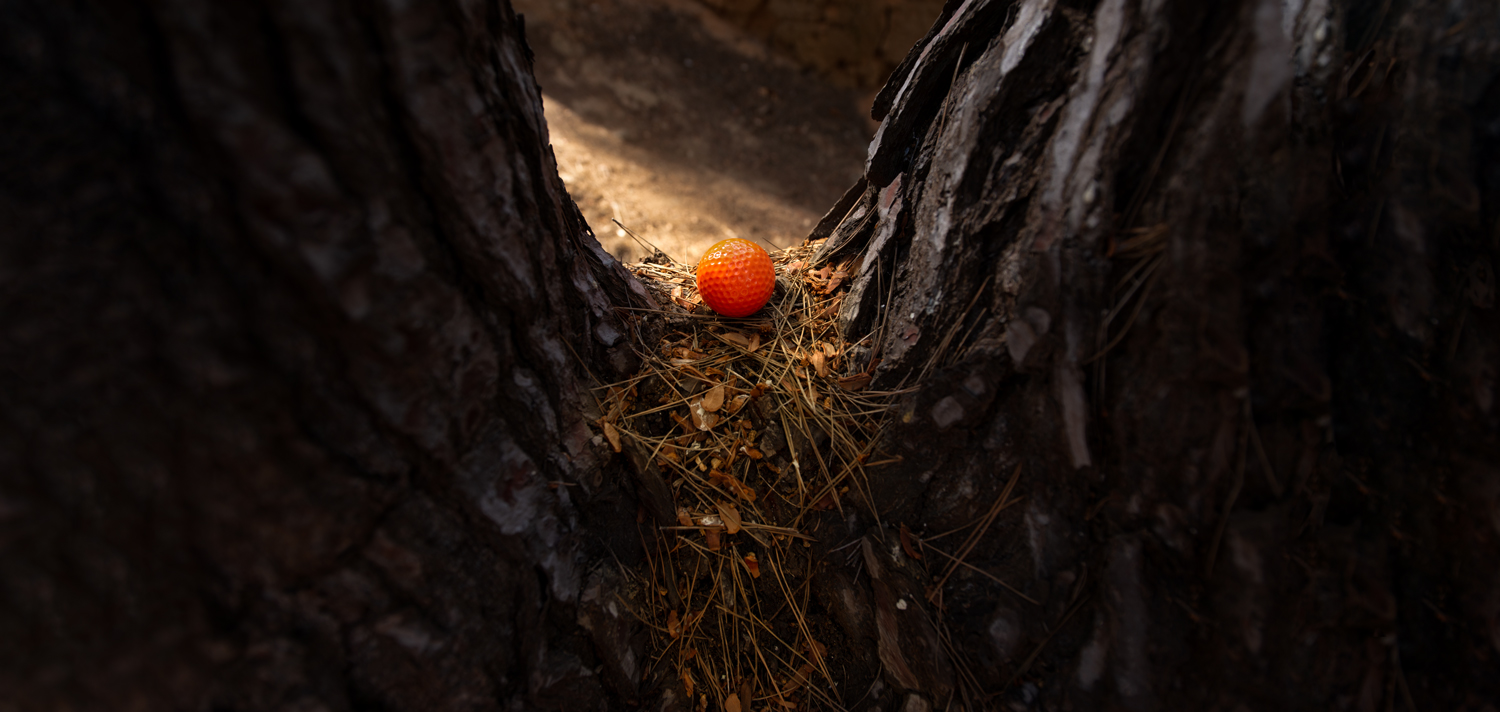 | F8446. Piloteta de golf a l'enforcadura d'un arbre. |