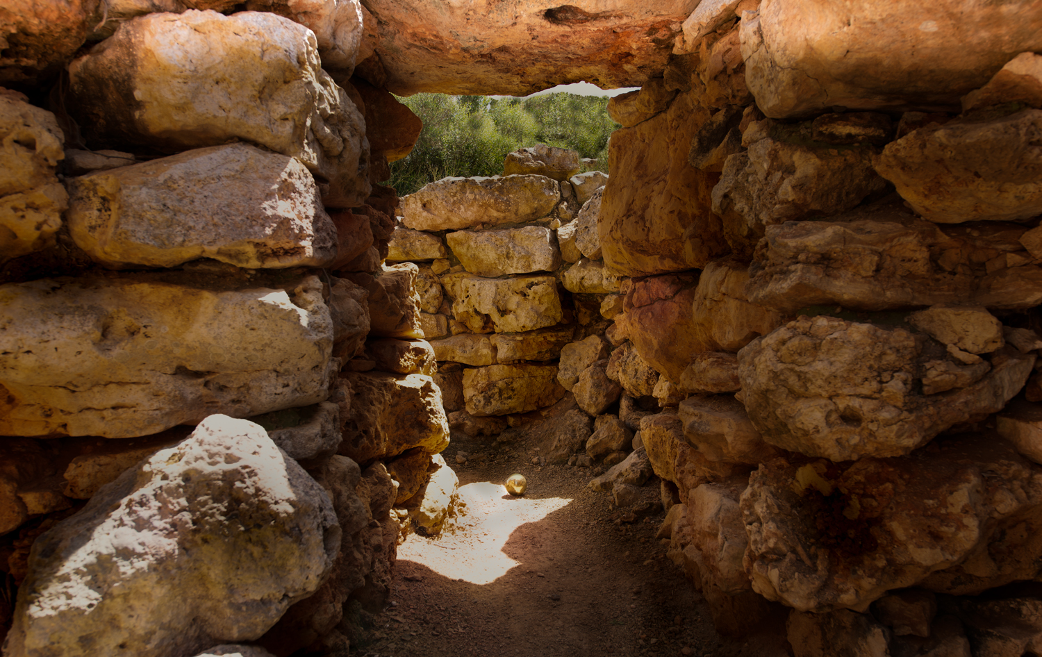 | F7916. Doris, a l'altra part del talaiot, intenta captar ones tel·lúriques després d'engolir-se, goludament, dos iogurts de llet de cabra sense sucre ni cap edulcorant. Això sí: amb un poquet de ratlladura de pell de taronja. |