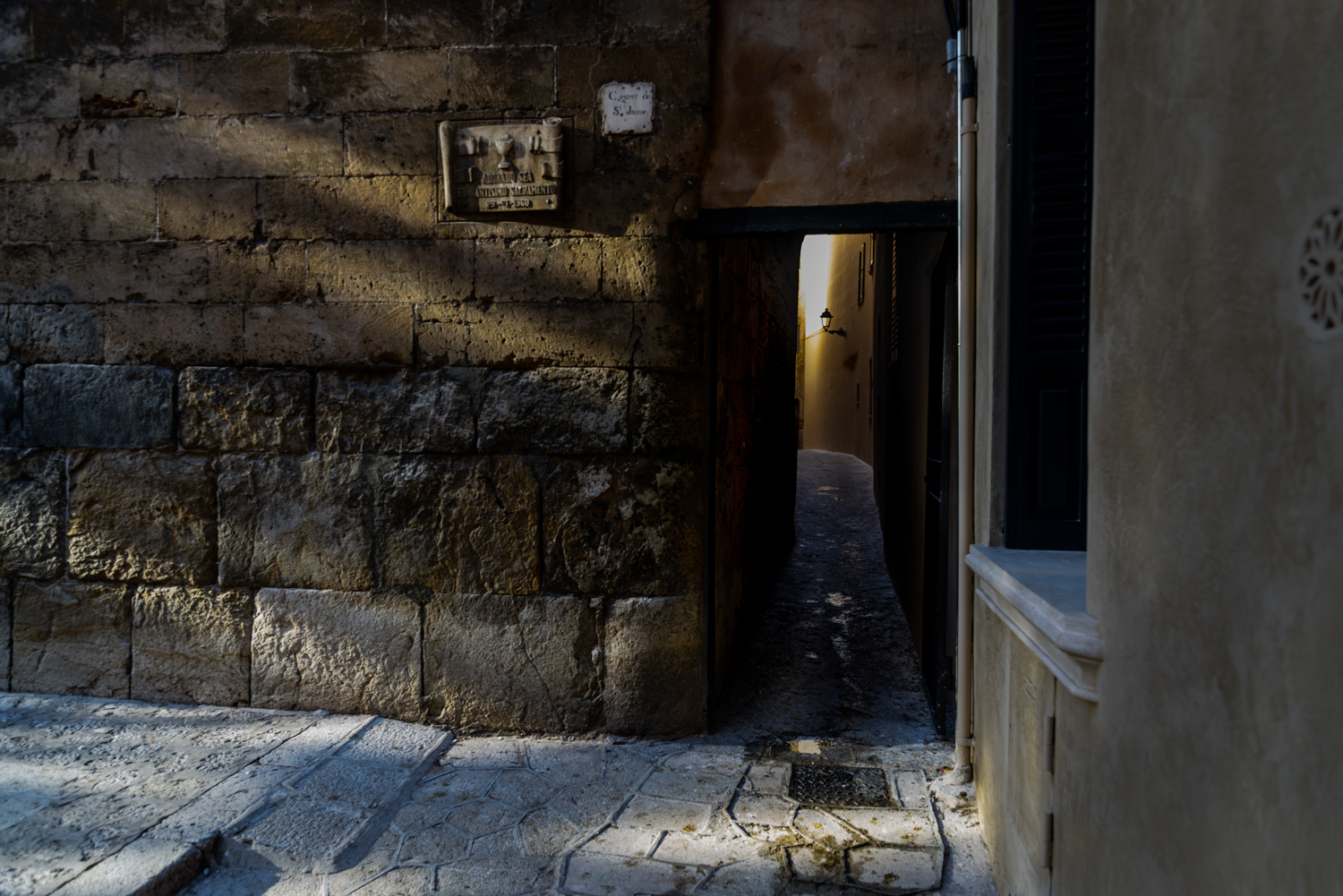 F4442. Doris a l'entrada del carrer estret de Sant Jaume tancat.. Molt graciós el fanalet que es veu al fons.