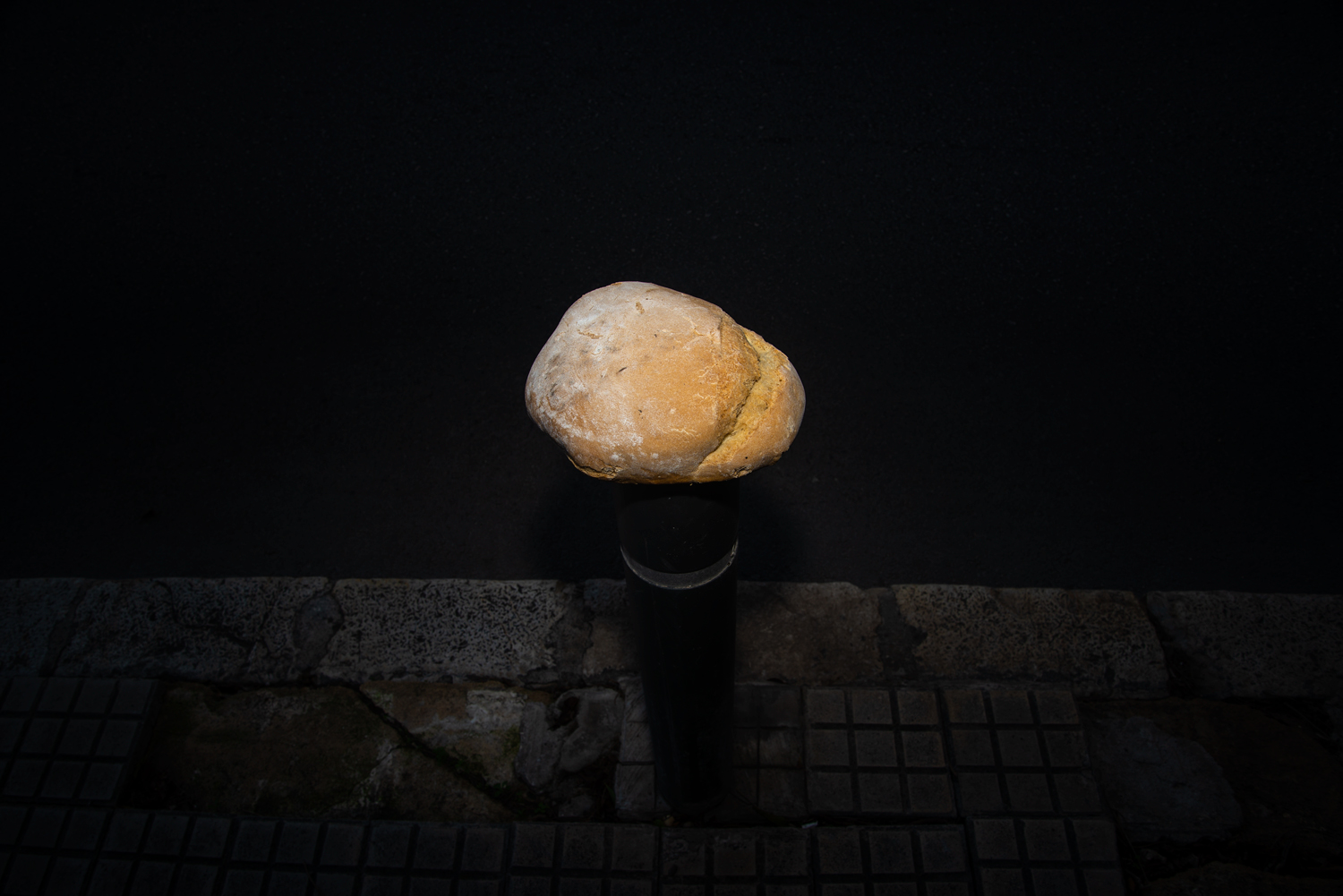 F4316. Fogassa de pa. Passant amb el meu velocípede elèctric, pel carrer Joan Miró, em vaig trobar amb aquest monument. El pa encara feia olor de forn. Ho vaig deixar bellament així com ho trobí.