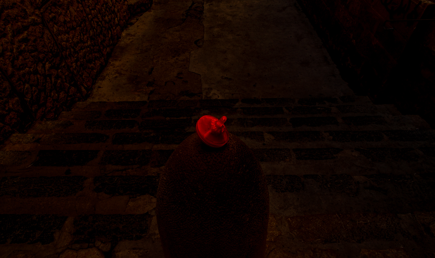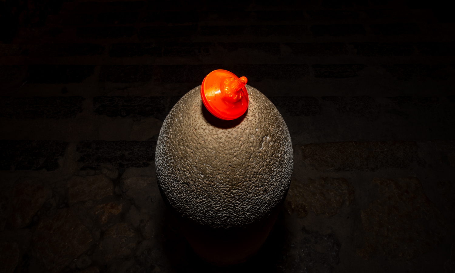 F5273. Bufeta vermella damunt piló. Aproximació pictòrica.