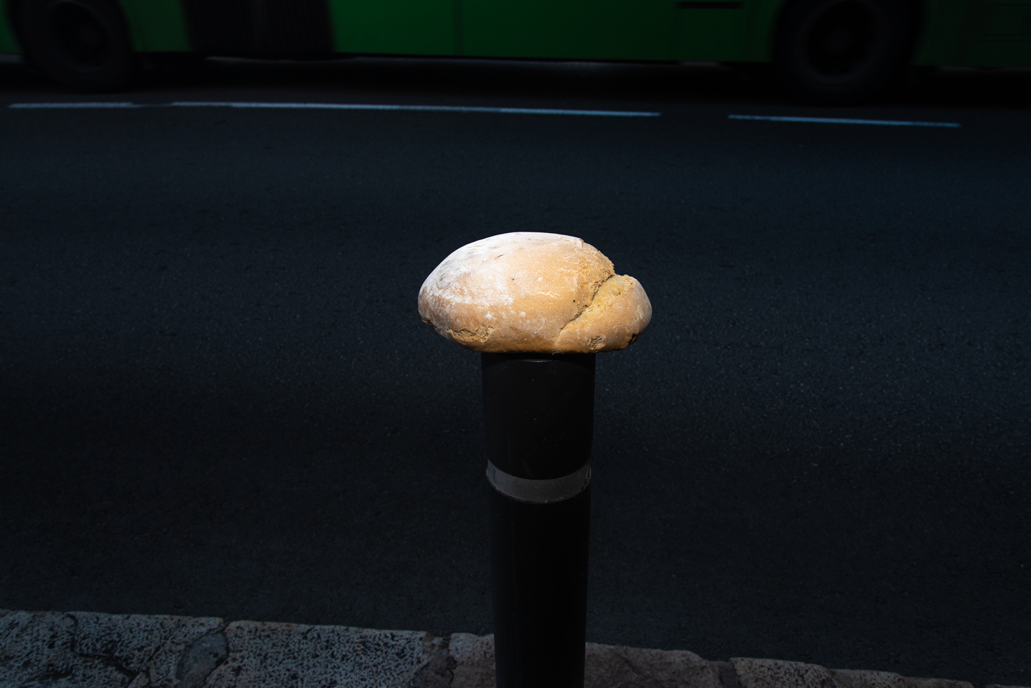 F4316. Fogassa de pa. Passant amb el meu velocípede elèctric, pel carrer Joan Miró, em vaig trobar amb aquest monument. El pa encara feia olor de forn. Ho vaig deixar bellament així com ho trobí.