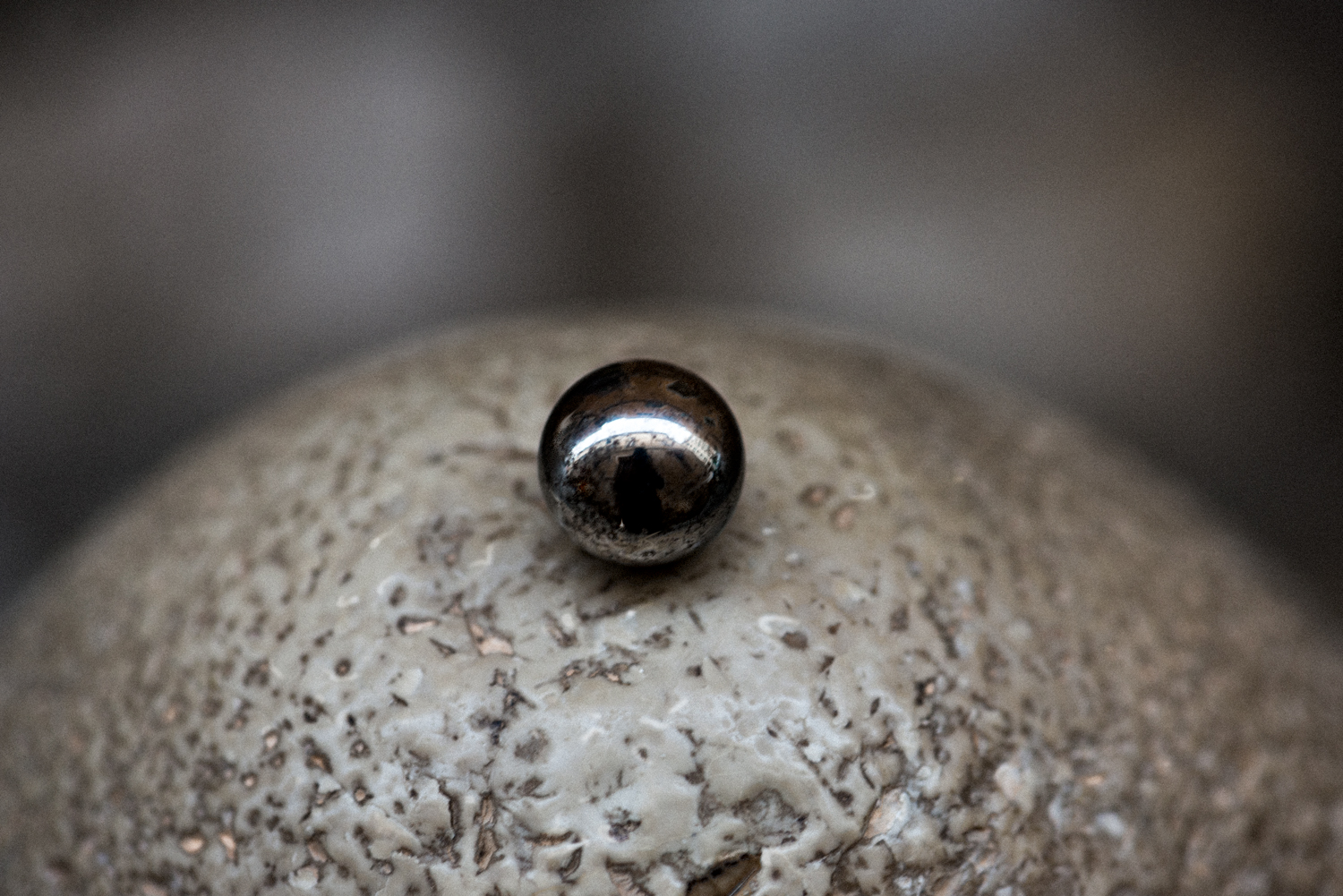 F2602. Bajoca amb polí d'acer. Confrontació d'elements naturals i industrials. El polí sembla increïblement gelat.